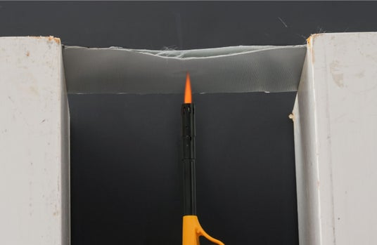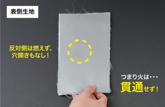 1200℃以上の火を1分以上当て続けた面は、その点部分だけが燃えたが、反対面は燃えなかった。