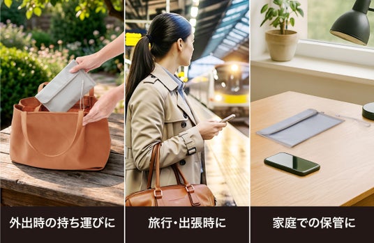 外出時、旅行・出張、車内、自宅保管などさまざまなシーンで