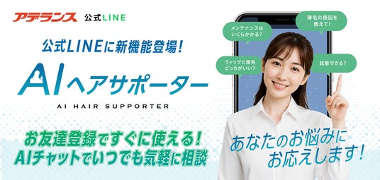 毛髪・美容・健康・医療のウェルネス事業をグローバル展開する株式会社アデランス(本社:東京都品川区、代表取締役社長 鈴木 洋昌)は、髪や頭皮、ウィッグ、増毛などに関するお悩みをAIが会話形式でサポートする新たな相談サービス、AIチャット機能「AIヘアサポーター」を2026年1月26日(月)からLINE公式アカウントで提供開始します。