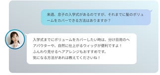 本サービスは、髪のお悩みが人に直接相談しづらい内容のひとつであること、また電話や対面での相談に心理的ハードルを感じる方がいらっしゃることから、安心してプライベートにお悩みを打ち明けられる相談環境として、AIチャット機能を導入しました。これにより、いつでも、24時間365日相談でき、最適なアドバイスを受けることが可能になります。