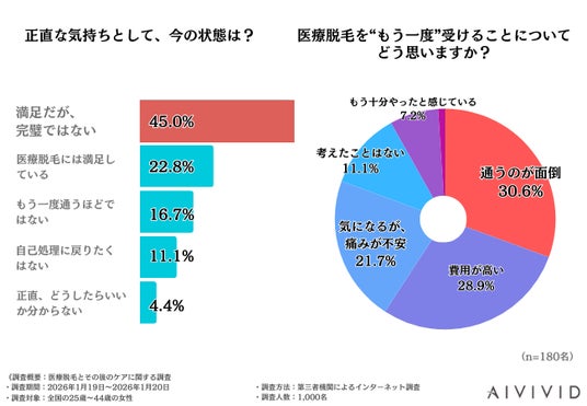 【2026年最新調査】「医療脱毛」経験者の35%が「効果(永久脱毛)」を最重視。一方で、施術後のアフターケア不足が肌トラブルを招く懸念も?女性1,000人に聞いた脱毛の実態と課題