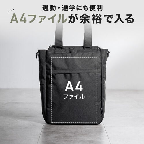 3WAYトートバッグ スリム 縦長 リュック / ショルダーバッグ 14インチ PC収納 通学 通勤 カジュアル 多機能 メンズ ビジネス 容量 15L A4収納 ブラック