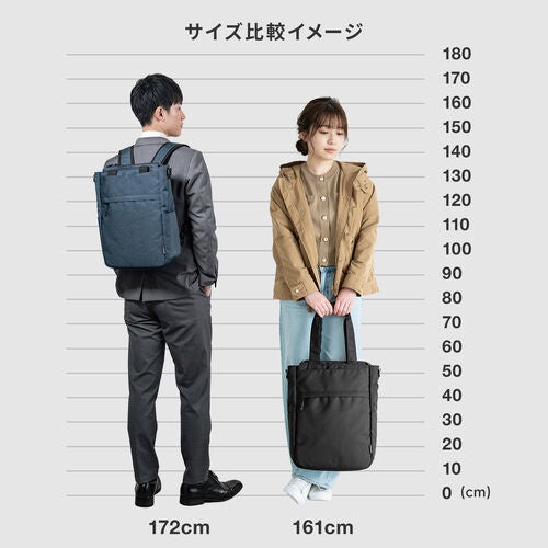 サンワサプライ株式会社電車移動でも隣席に当たらないスリム設計で、3通りの持ち方ができる多機能ビジネス対応バッグ