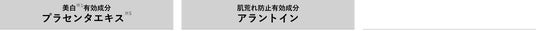 ※1 メラニンの生成を抑え、しみ、そばかすを防ぐ ※2 ホエイ(2)※3 含硫ケイ酸アルミニウム ※4 角質層まで ※5 ブタプラセンタエキスー1 ※6 加水分解卵殻膜(保湿成分) ※7 乾燥や角質肥厚によるもの ※8 キメの整った肌 ※9 年齢に応じたケア