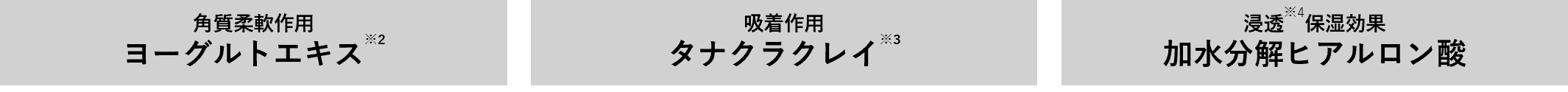 強い薬剤の力や物理的に擦り落とすだけのピーリングとは異なり、ヨーグルトエキス※2の角質柔軟作用、タナクラクレイ※3の吸着作用、加水分解ヒアルロン酸の浸透※4保湿作用の多角的なアプローチで、より効率的に不要な角質を除去しながら、うるおいを保ってやさしくケアできる処方にこだわり抜きました。
