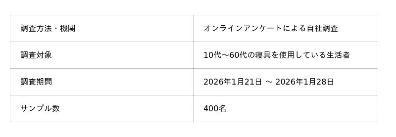 本調査を通じて、冬場であっても多くの人が寝汗を経験しており、その寝汗が冷えや中途覚醒、眠りの浅さなど、睡眠の質低下につながっている実態が明らかになりました。また、冬の寝具選びでは「とにかく暖かいこと」が最も重視される一方で、「蒸れにくさ」や「快適性」も求められており、実際の睡眠中の体感との間にギャップが生じていることがうかがえます。これらの結果から、冬の睡眠トラブルは単なる冷えの問題ではなく、寝床内の温度や湿度バランスが崩れることによって引き起こされている可能性が示唆されました。