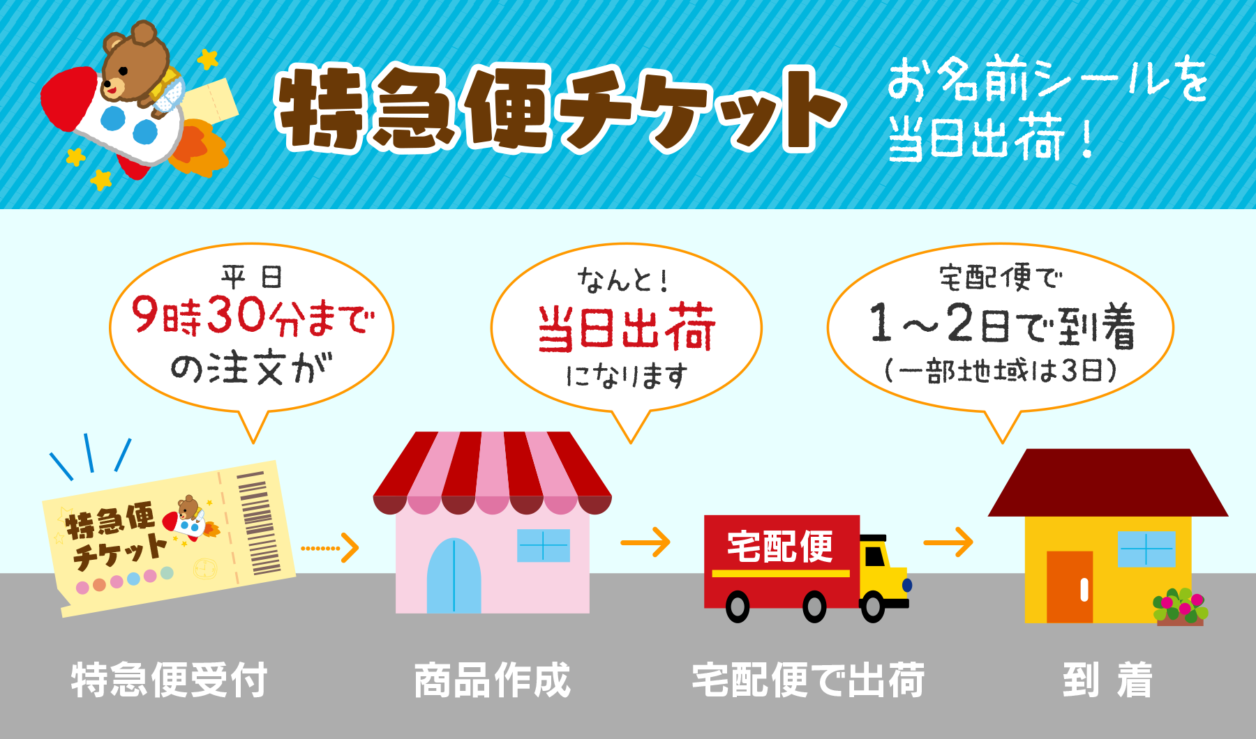 さらにお急ぎの方は、ご注文~商品出荷までを早くする「特急便チケット」も取り扱っております。