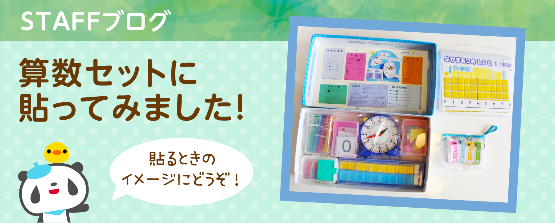 店舗スタッフが、実際に学校から渡された算数セットへ貼った体験をブログにしました。所要時間や貼るときのコツなどをご紹介しています。