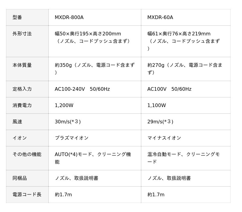 ■マイナスイオンヘアドライヤー MXDR-60A