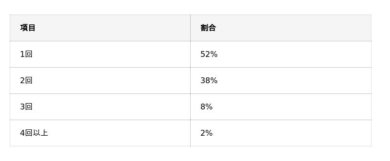 さらに、「2回」(38%)と回答した人を含めると、全体の約9割が2回以内で施術を完了しています。少ない回数で施術を終えているケースが大半を占める結果となりました。