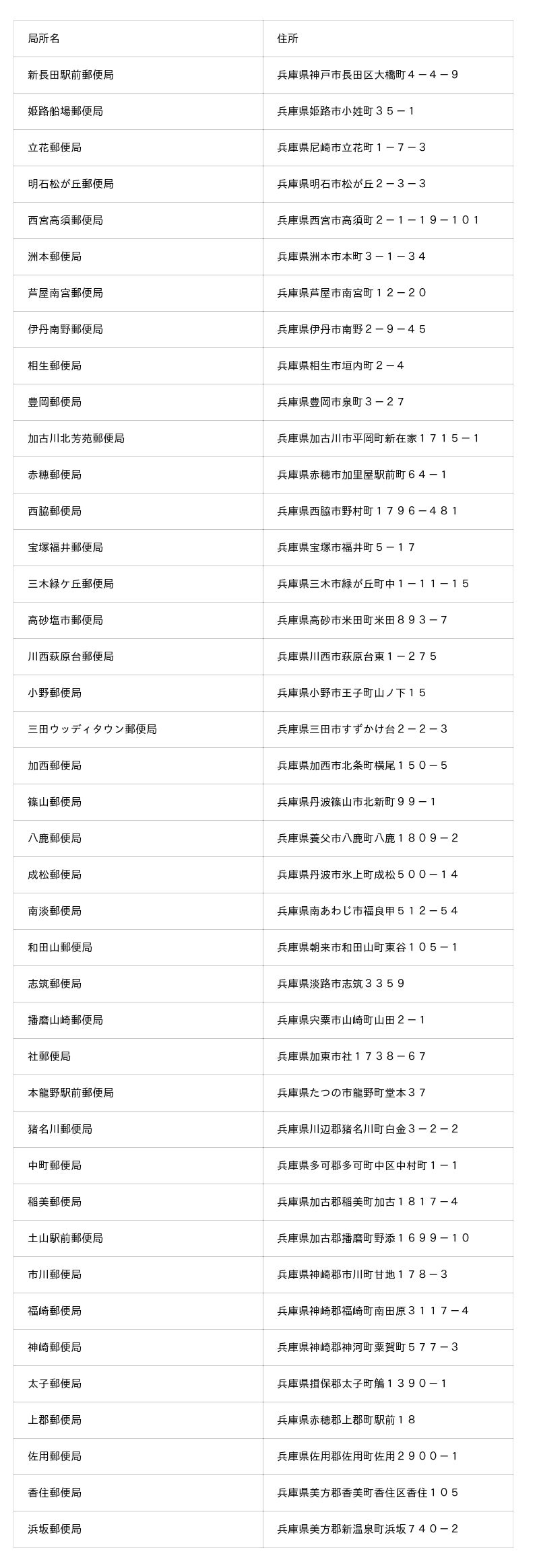 兵庫県内の啓発冊子を配布中の郵便局 一覧