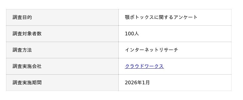 「施術にかかった費用」「使用した製剤」「効果の持続期間」などの具体的な質問を行い、顎ボトックスを体験した方のリアルな感想を集めることができました。