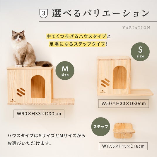 選べるバリエーション中でくつろげる「にゃんハウス」と、足場として使える「にゃんステップ」をラインアップ。