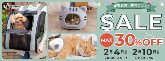 PetFun(ペットファン)楽天市場店では、2月23日(月)まで楽天お買い物マラソンセールを開催。