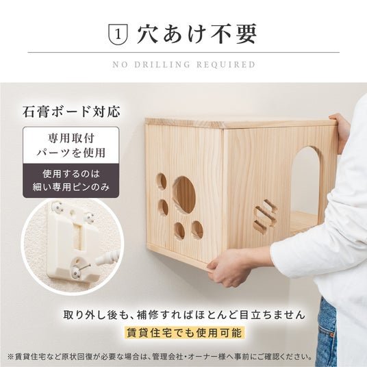 壁への加工を最小限に抑えながら、猫の居場所を増やすことができます。