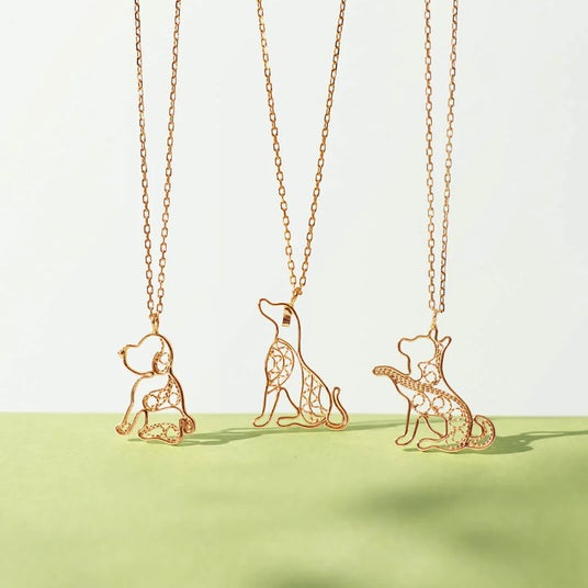 手作りの、わんちゃんモチーフ本革ペンケースとゴールドジュエリーを集めました。
