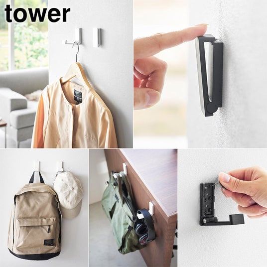 壁付け折り畳みフック タワー 2個組