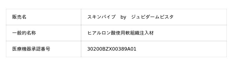 1. スキンバイブ by ジュビダームビスタ 電子添付文書 https://www.info.pmda.go.jp/ygo/pack/112130/30200BZX00389A01_A_01_01/ (2026年1月20日アクセス)
