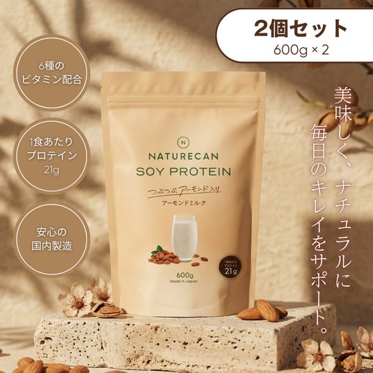 【ソイプロテイン アーモンドミルク つぶつぶアーモンド入り】食品ロス削減!環境と美味しさの両立を目指すNaturecanならではの原料設計のソイプロテイン。