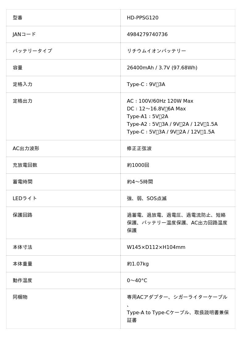 過蓄電、過放電、過電圧、過電流防止、短絡保護、バッテリー温度保護、AC出力回路温度保護