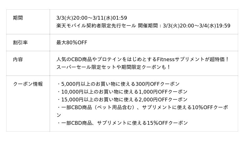 楽天モバイル契約者限定先行セール 開催期間:3/3(火)20:00~3/4(水)19:59