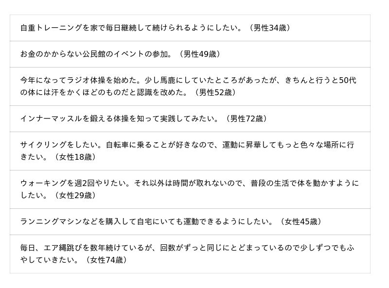 筋肉・筋力の維持・向上のために行った運動や摂取した飲食品、今後の意向などについて聞いています。調査結果をお知らせいたします。