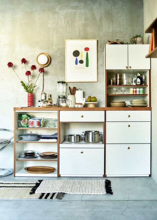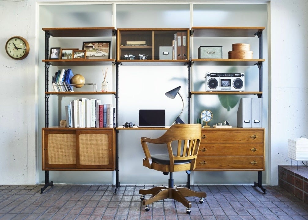 家具の新商品としては、これまで展開のなかった、組み合わせの自由度を追求して開発されたユニット型のキッチン収納や、ホームオフィスに対応したシェルフを新たにラインナップ。