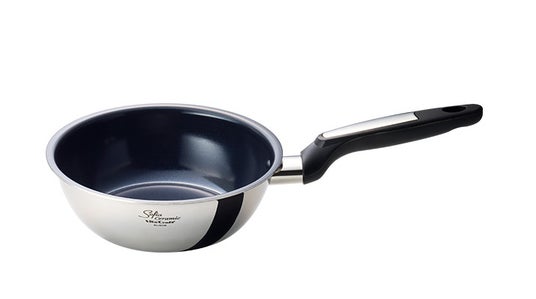 ビタクラフト全面3層構造の本体に、ビタクラフト独自の3層セラミックコートを採用。ダイヤモンドパウダー配合で耐久性をアップしたセラミックフライパン。