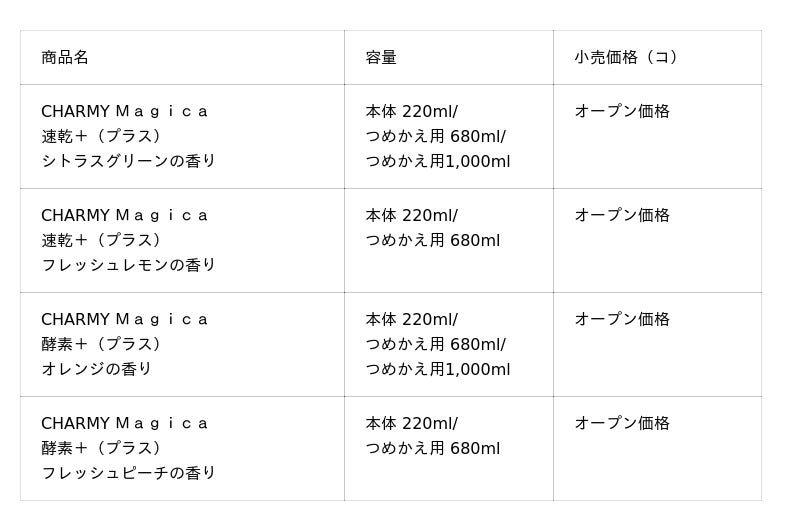 ライオン株式会社(広報部)水切れ時間15秒を実現した『CHARMY Magica 速乾+(プラス) カラッと除菌』、油分解酵素を新配合した『CHARMY Magica 酵素+(プラス)』