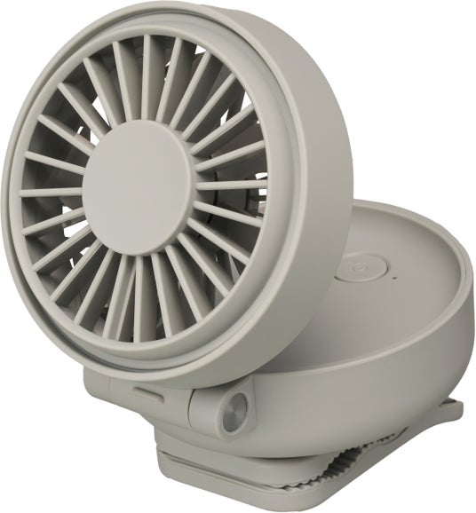 本体には水平方向に360度回転するクリップがついています。ファン部分は最大で180度開閉可能です。