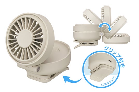 クリップ付きで日傘やリュックに取り付けられる風速従来比1.8倍の「コンパクトターボファン ミニクリ」を発売