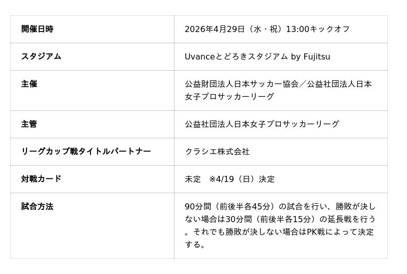 「2025/26 WEリーグ クラシエカップ」ノックアウトステージ決勝 概要