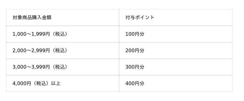 通常付与ポイントとあわせて購入金額の最大20%分のポイント付与となります。