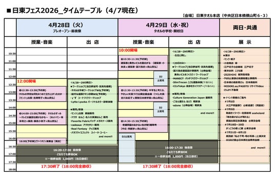 【Peatixで事前予約スタート】日東タオルが「タオルの学校」開校。4月28日~29日、開校記念イベント「日東フェス2026」開催!