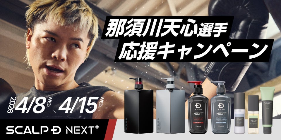 4月11日(土)に開催される「WBC世界バンタム級挑戦者決定戦」に、「スカルプD ネクストプラス」のブランドアンバサダーを務める那須川天心選手が出場いたします。天心選手を応援するべく、この度、アンファーストアにて「スカルプD」シリーズの対象商品を定期購入いただくと初回価格が20%オフとなるお得なキャンペーンを開催いたします。定番のシャンプーやパックコンディショナーのほか、「スカルプD ネクストプラス」の最新アイテムであるヘアケア・スタイリングアイテム3種も対象となります。是非この機会にお買い求めください。