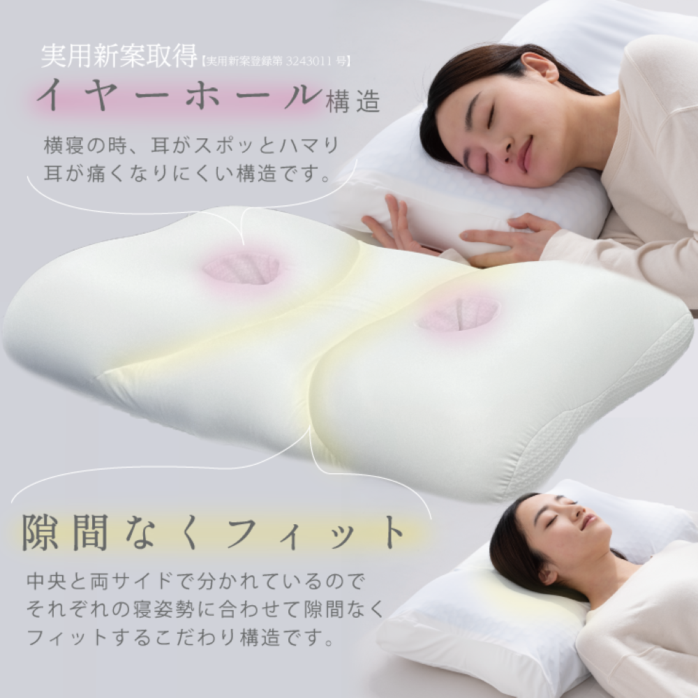 ◇横向き寝時の耳を優しくガード(イヤーホール構造)