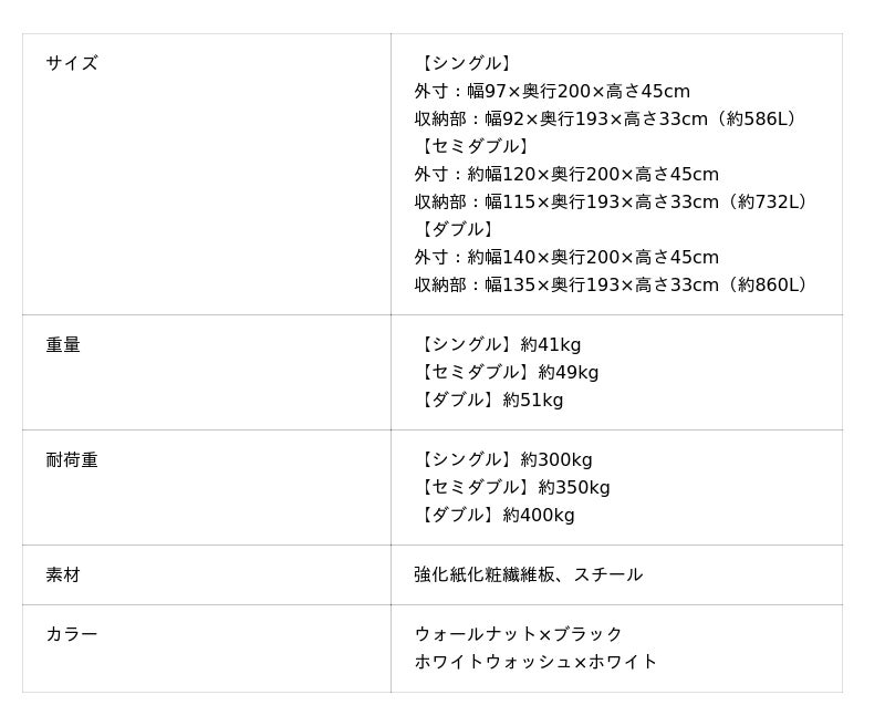 収納容量はシングルサイズで586L、セミダブルサイズで732L、ダブルサイズで最大860Lに達し、ラグやゴルフバッグ、季節家電、スーツケースといった、置き場所に困る長物や大型アイテムもすっきりと収めることができます。
