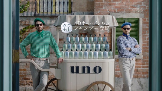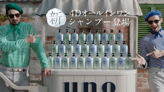本CMでは、uno初のヘアケアシリーズから登場した「4D オールインワンシャンプー」を紹介。男性特有の“ガシガシ洗い”などの習慣に着目し、「シャンプー」「トリートメント」「スカルプケア」「ベースデザイン」の4つの機能を1本に集約した設計で、今の髪だけでなく未来の髪まで見据えたケアを提案。