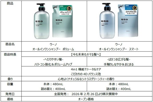 特設サイトでは、男性のクセを味方にする「ウーノ オールインワンシャンプー」のテクノロジーや、スマートとボリューム2種の違いなど、「今も、未来もキマる髪」へ導く4Dオールインワンシャンプーのヒミツを詳しくチェックできるコンテンツをご用意しています。