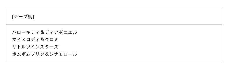テープ幅は、太幅10mmタイプ。全8種類(2柄セット×4種)の限定デザインは、「ハローキティ&ディアダニエル」「マイメロディ&クロミ」「リトルツインスターズ」「ポムポムプリン&シナモロール」をラインアップ。メーカー希望小売価格は、1,265円(税込)です。
