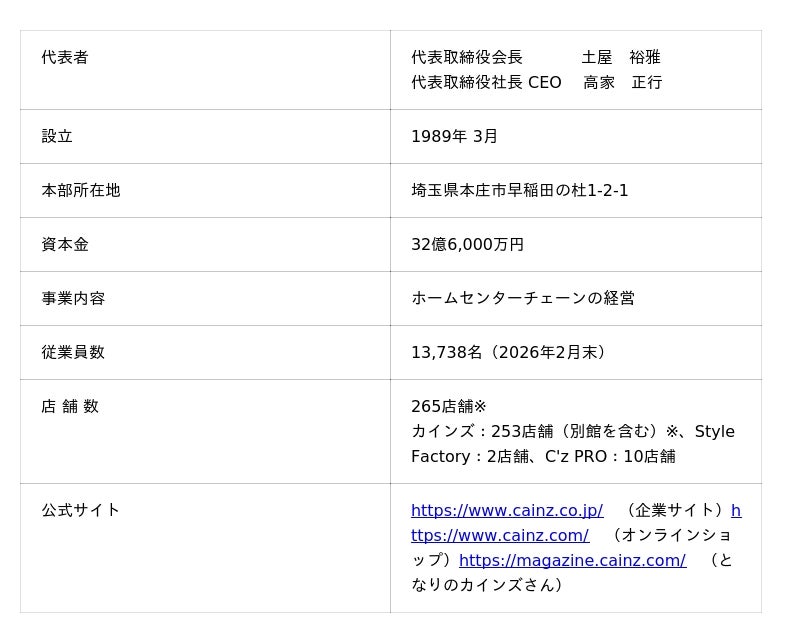 <株式会社カインズ 概要>
