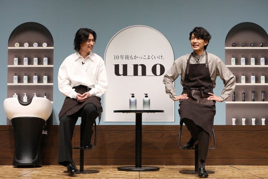 株式会社ファイントゥデイ(本社:東京都港区、代表取締役 社長 兼 CEO 小森哲郎)は、uno初のインバスへアケアの新CM発表会を、2026年4月13日(月)にWITH HARAJUKU HALLにて開催しました。本発表会には、ブランドアンバサダーとして常にunoの成長をけん引し続けてくださっている山崎賢人さんと、新CMで共演する藤木直人さんが登場。4月20日より全国で放映を開始する新CMのお披露目に加え、商品のコンセプトでもある「10年後もかっこよく」をテーマに、お二人がどのように体現していくのかなど、撮影秘話も交えながらお話いただきました。