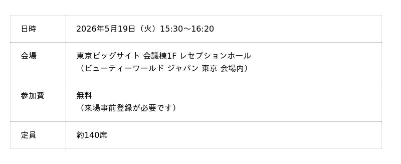 年間グランプリをはじめとした各部門賞の発表・授賞式を、ビューティーワールド ジャパン 東京の公式ステージにて開催いたします。当日は授賞式に加え、豪華審査員による特別トークセッションも実施。ぜひ会場へお越しください。