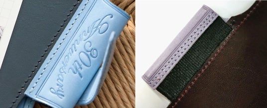 ペンホルダー部分は裏面がゴム仕様となっており、手帳にしっかりフィット。直径17mmの太軸ペンにも対応しています。さらに、30周年記念ロゴの刻印が特別感を演出します。