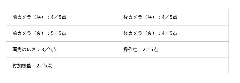 - 前カメラ(昼):5点満点