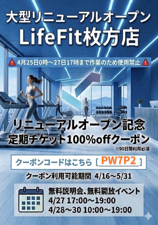 LifeFit枚方店大型リニューアルオープン決定!!️