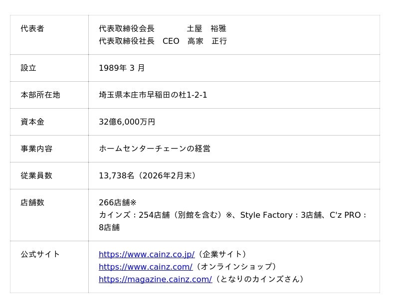 <株式会社カインズ 概要>