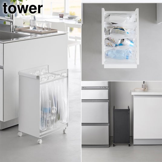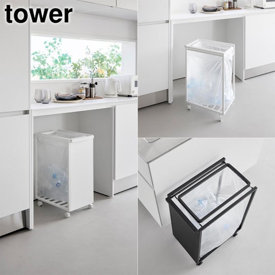 スリム蓋付き目隠しダストワゴン タワー 45L